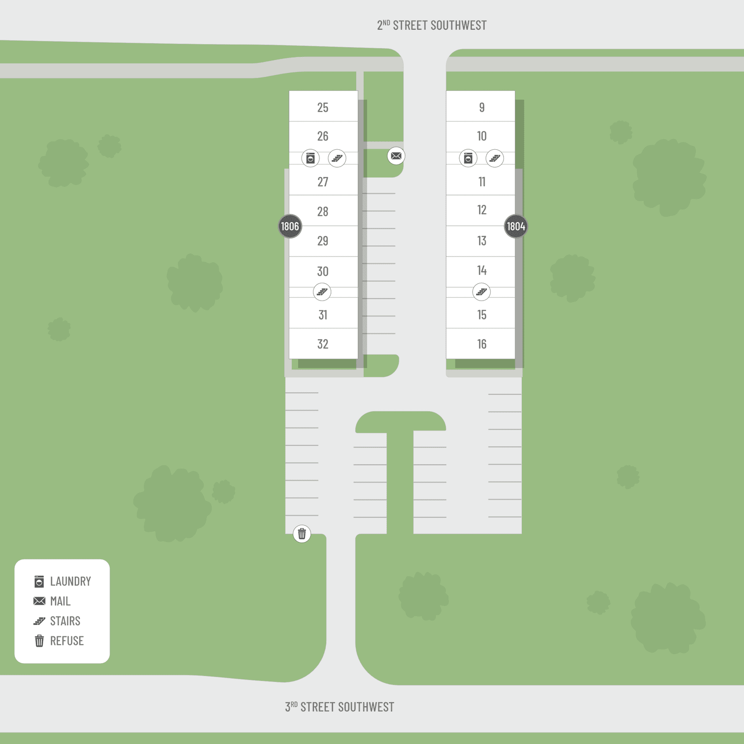Select a floor plan or bedroom count to view those units on the overhead view on the site map. If you need assistance finding a unit in a specific location please call us at 507-218-2071 TTY: 711.